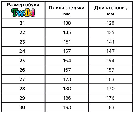 Таблица размеров