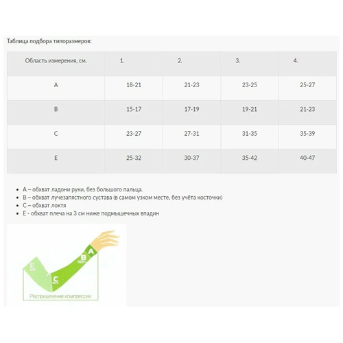 — Подбор размера изделия в соответствии с показаниями прилагаемой таблицы.