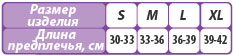 — Размер плечевого бандажа выбирается согласно таблице подбора изделий по длине предплечья. Длина замеряется сантиметровой лентой от вершины локтевого отростка до средней фаланги пятого пальца кисти.