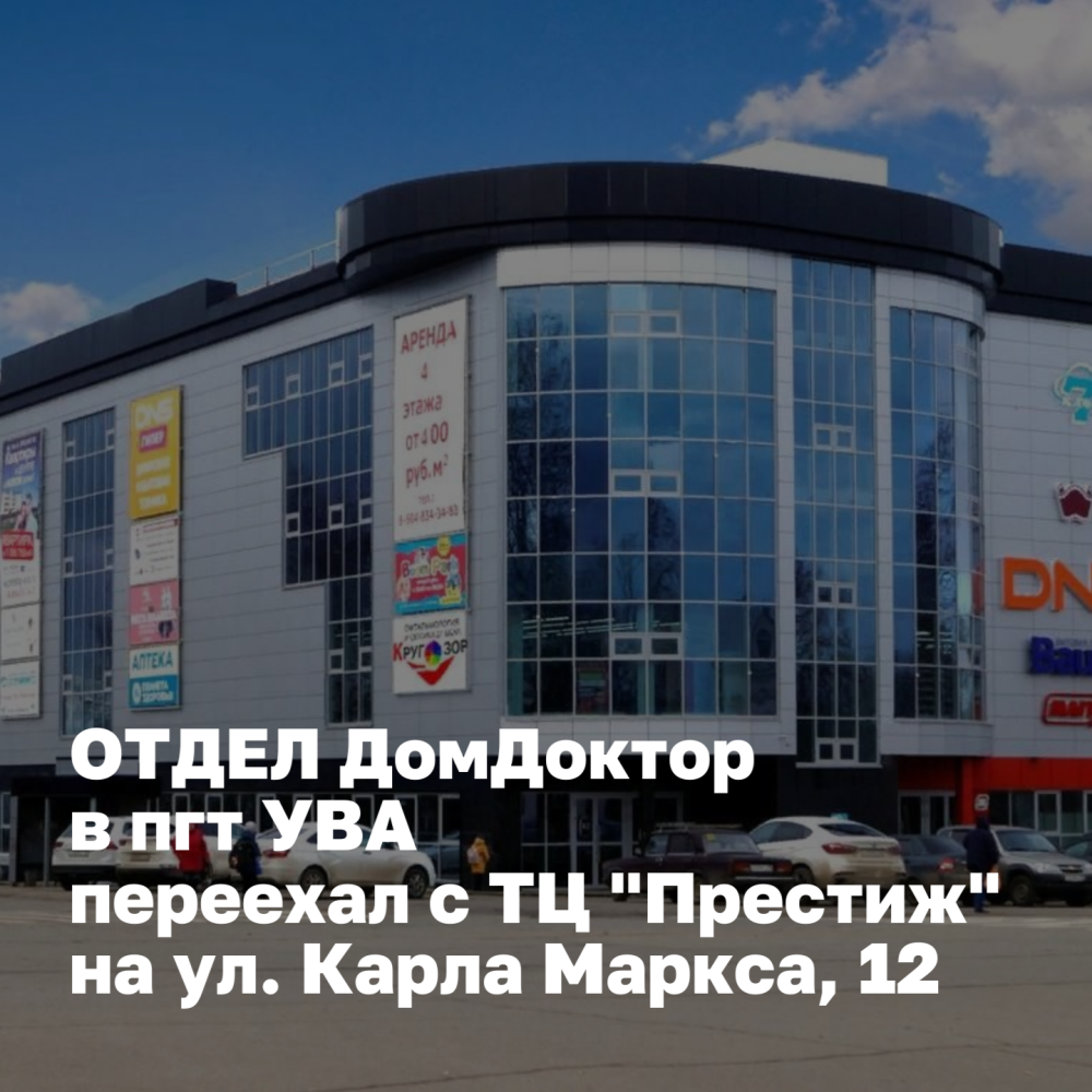 Закрытие отдела ДомДоктор в Уве ТЦ "Престиж" и открытие на К.Маркса, 12